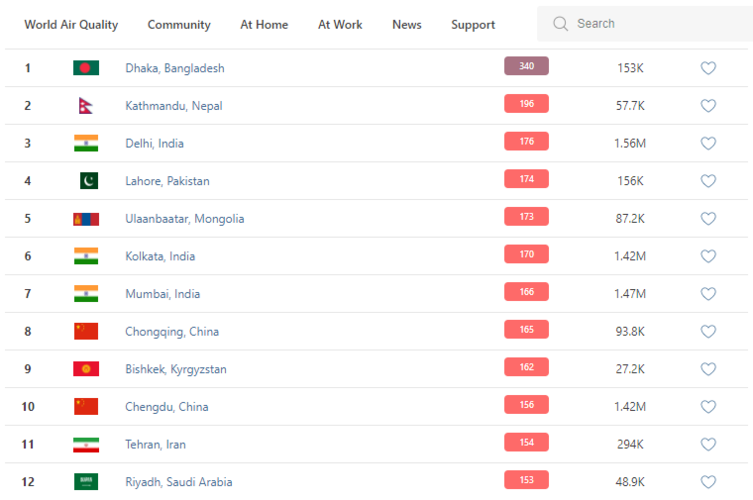 Bishkek takes the 9th place in the World Air Quality ranking of the largest cities in the world.