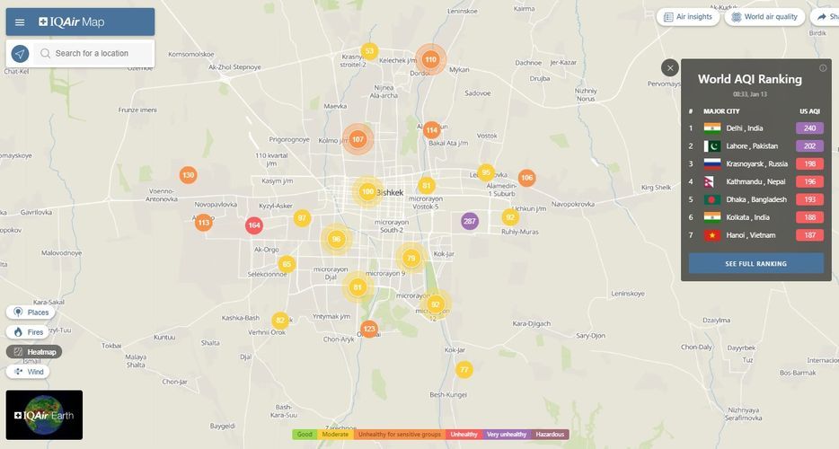 Bishkek takes the 35th place in the World Air Quality ranking of the largest cities in the world.