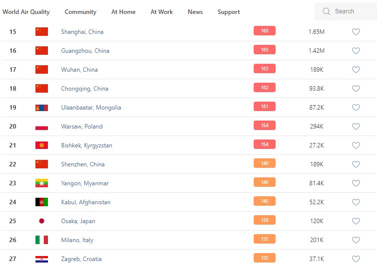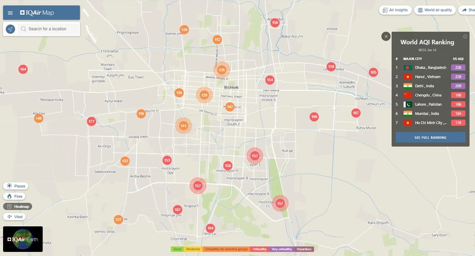Bishkek takes the 21st place in the World Air Quality ranking of the largest cities in the world.