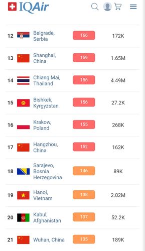 Bishkek takes the 15th place in the World Air Quality ranking of the largest cities in the world.