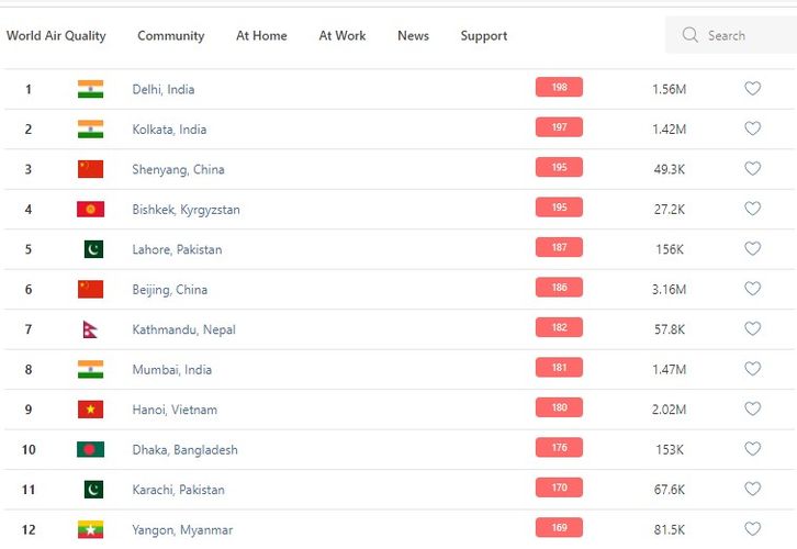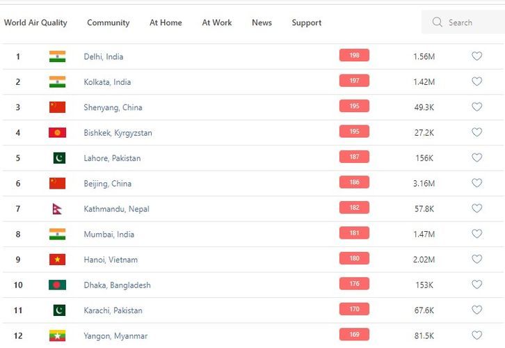 As of 8.30 am, the status of the city is marked as «unhealthy». The Air Quality Index, according to the website, is 195 (AQI).