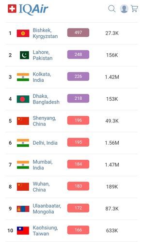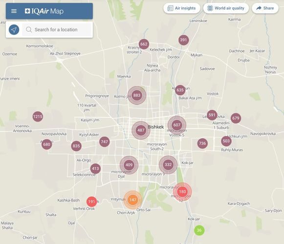 Bishkek takes the 1st place in the World Air Quality ranking of the largest cities in the world.
