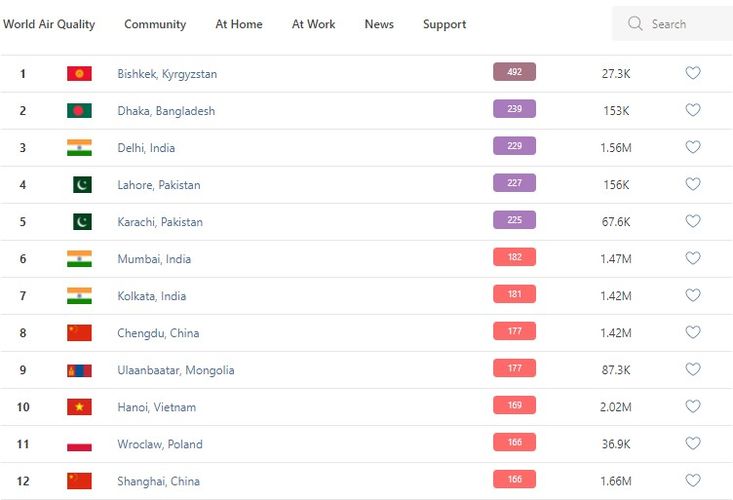 Bishkek takes the 1st place in the World Air Quality ranking of the largest cities in the world.