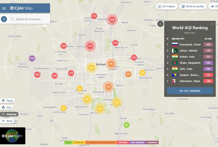 Bishkek takes the 42nd place in the World Air Quality ranking of the largest cities in the world.