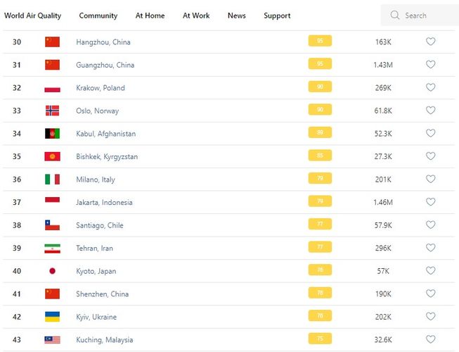 Bishkek takes the 35th place in the World Air Quality ranking of the largest cities in the world.