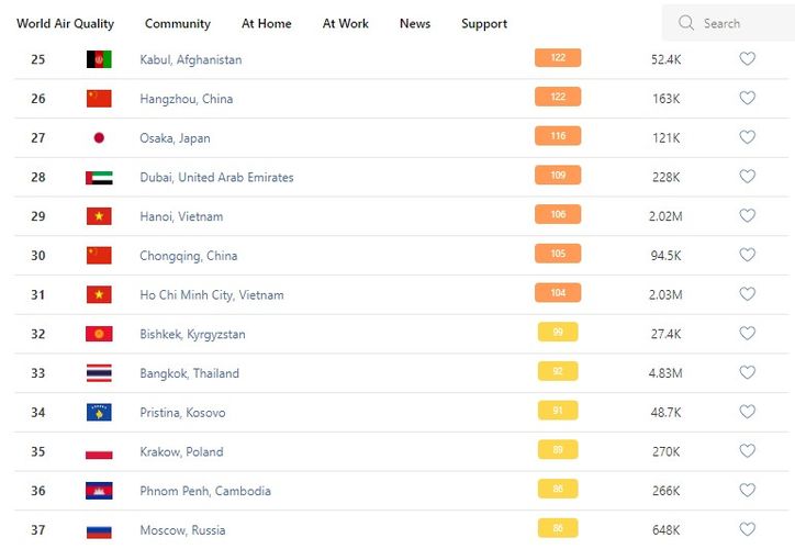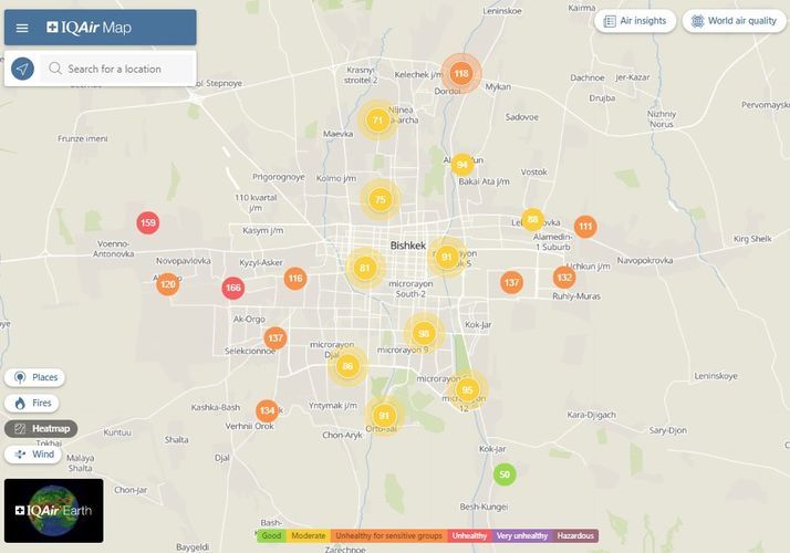 Bishkek takes the 32nd place in the World Air Quality ranking of the largest cities in the world.