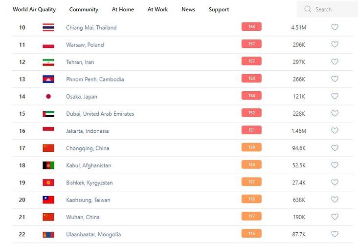 Bishkek takes the 19th place in the World Air Quality ranking of the largest cities in the world.