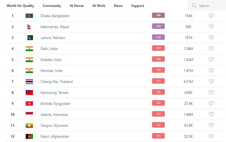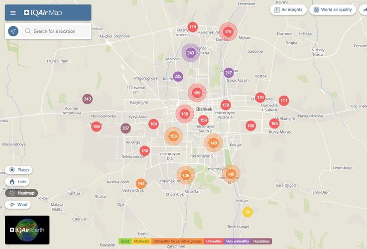 Bishkek takes the 9th place in the World Air Quality ranking of the largest cities in the world.