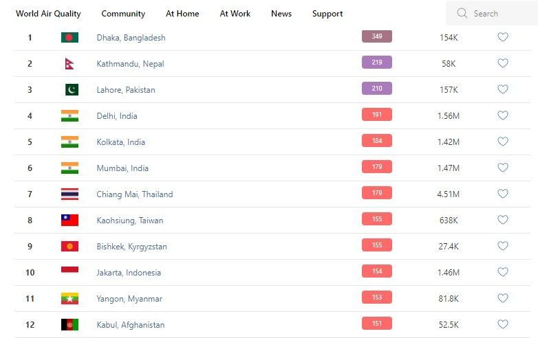 As of 8.30 am, the status of the city is marked as «unhealthy». The Air Quality Index, according to the website, is 155 (AQI).