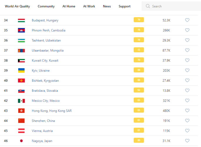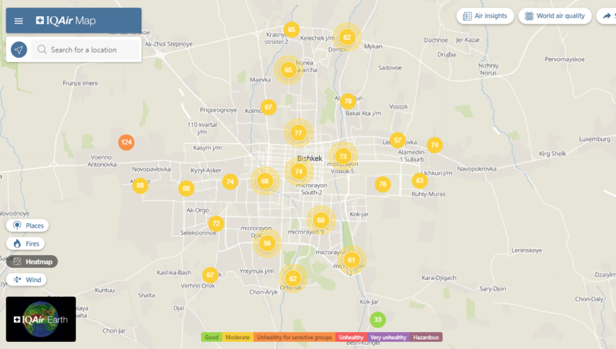 Bishkek takes the 40th place in the World Air Quality ranking of the largest cities in the world.