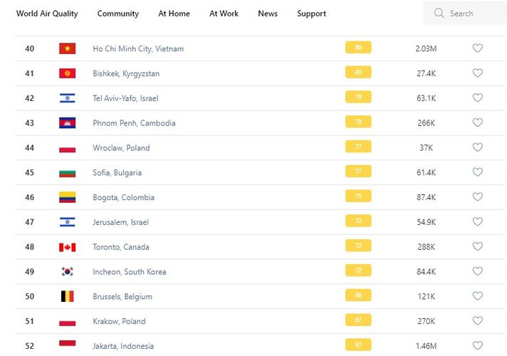 Bishkek takes the 41st place in the World Air Quality ranking of the largest cities in the world.