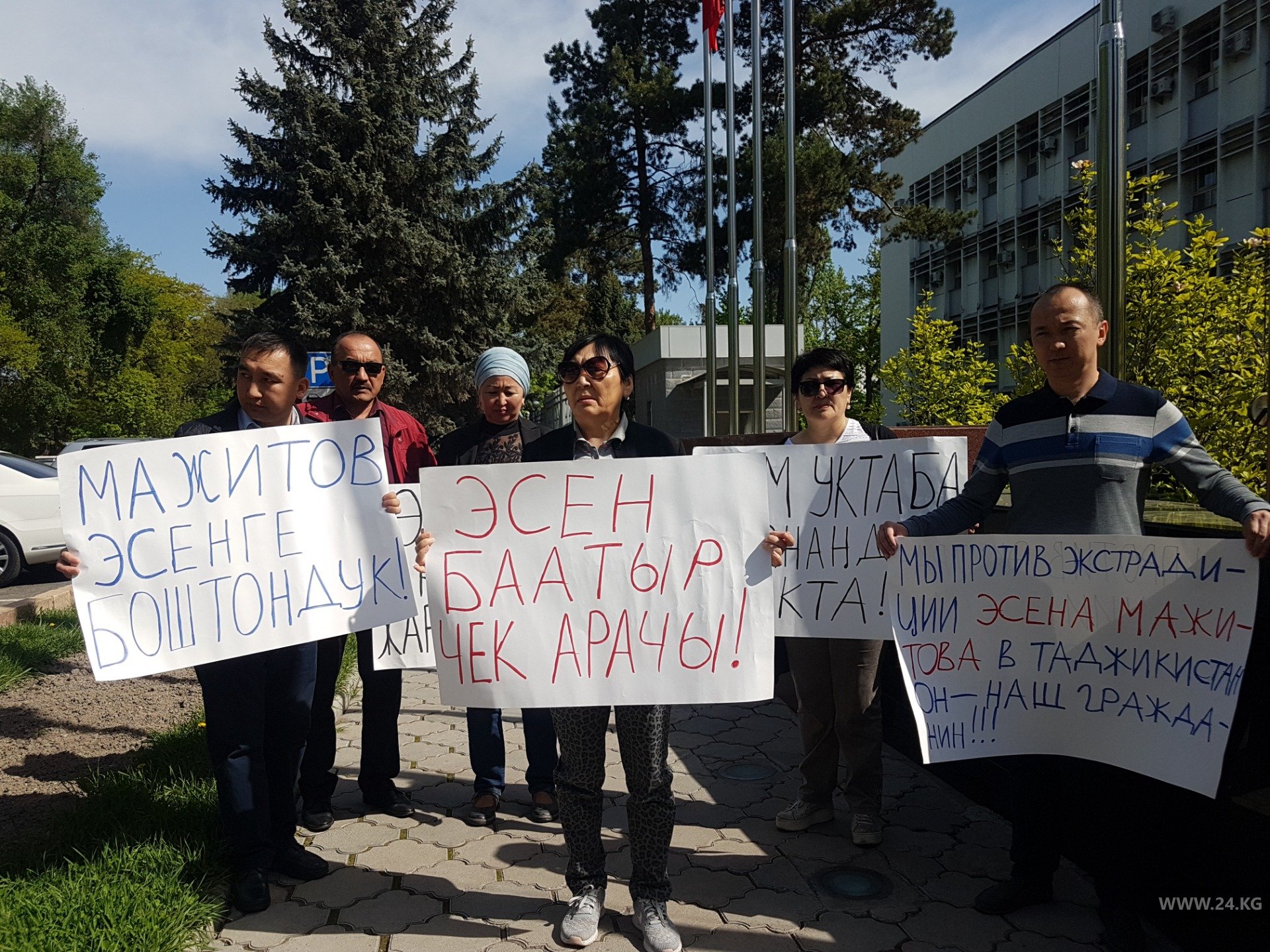 Rally was held in front of the Foreign Affairs Ministry building in Bishkek. Activists demanded a reaction to detention of Kyrgyzstanis in Russia at the request of the Tajik side from the head of the ministry Ruslan Kazakbaev.