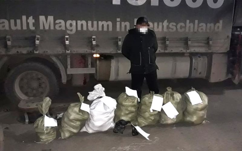 Packages with a white-gray substance with a specific odor and a total weight 135 kilograms 493 grams were found hidden in the rear tires of a Renault Magnum car at Syrym automobile checkpoint (West Kazakhstan region) with the help of a service dog named Lady.