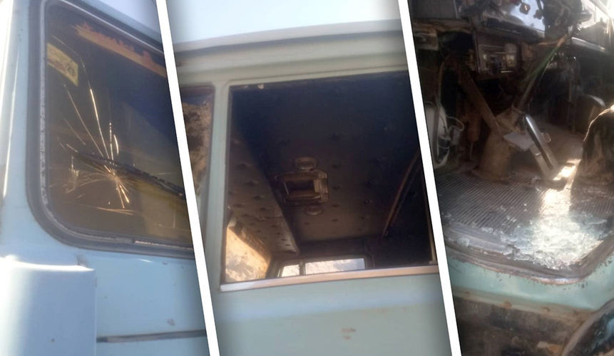 According to the spokesman for the Mayor of Isfara Zubaidullo Shomadov, the incident occurred on January 20 in the Kyrgyz Ak-Sai village. The windows and headlights of the truck were broken, and the driver, Nasrullobek Aslonov, a citizen of Tajikistan, was injured.
