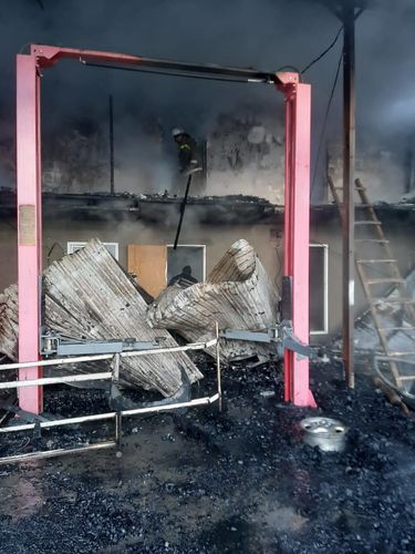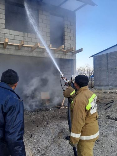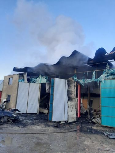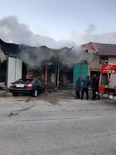 A two-story store and an auto repair shop burned down in Kerben. Press service of the Ministry of Emergency Situations of Kyrgyzstan reported.