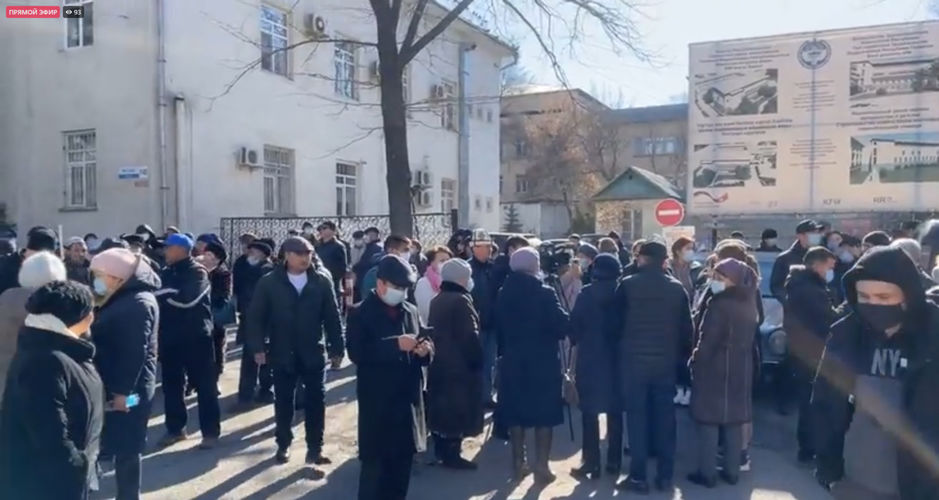 A rally for resignation of Alymkadyr Beishenaliev is taking place near the building of the Ministry of Health in Bishkek.