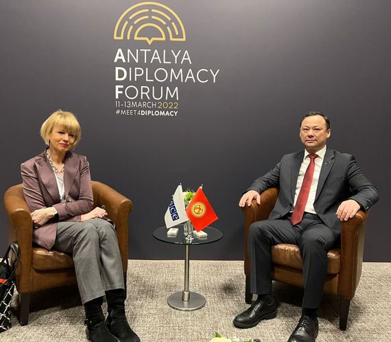 «Minister Kazakbaev informed Helga Maria Schmid about the impartial position of the Kyrgyz side, voiced by the President of Kyrgyzstan Sadyr Japarov, and the call for the parties to sit down at the negotiating table to resolve the conflict exclusively by diplomatic methods. In this regard, he stressed that Kyrgyzstan supports the start of the negotiation process between Russia and Ukraine on a peaceful settlement of the conflict and welcomes holding of meetings of the heads of the foreign ministries of the two countries on the sidelines of the Antalya Diplomatic Forum on March 10.