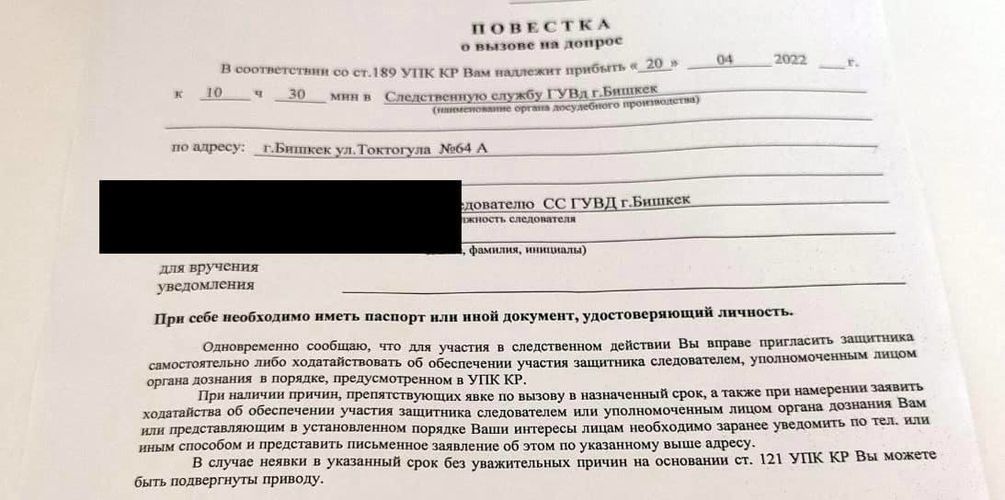 «Yesterday they gave time to study the protocols on the initiation of three criminal cases so that we can have time to make petitions. But this morning, the investigator brought a summons,» Bolot Temirov told.