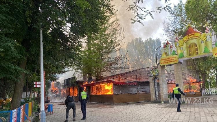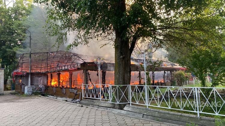 One of the summer cafes Panorama caught fire early in the morning in Panfilov Park in the center of Bishkek.