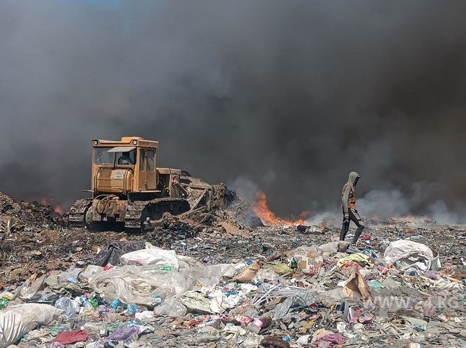 «Smoke from the fire is visible for several kilometers. The fire is big. Landfill workers are trying to prevent the fire from spreading. Firefighters arrived at the scene,» the reader said.