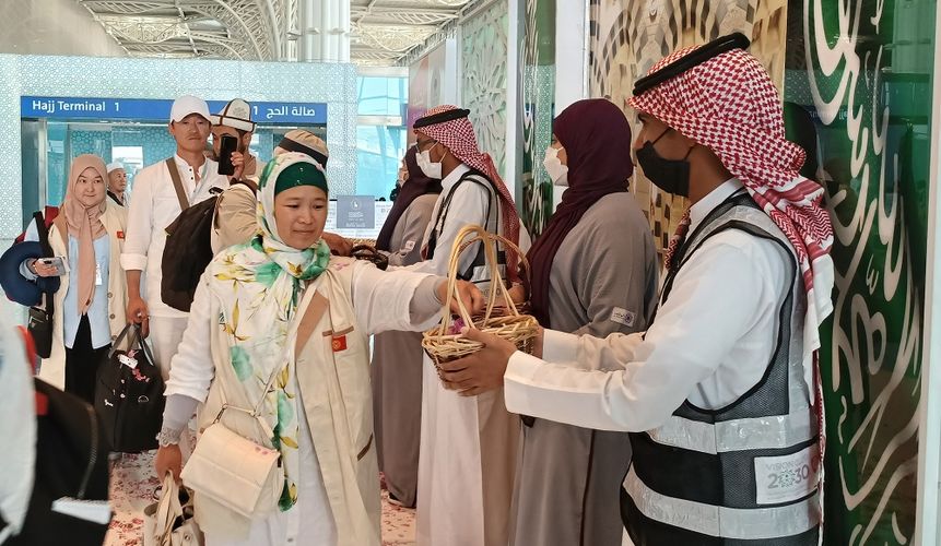 The Kyrgyzstanis were met by a member of the headquarters for organizing the pilgrimage Zhorobai Shergaziev.