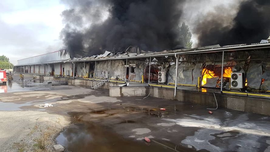 According to preliminary data, the fire broke out in one of the warehouses on Zhaz Street. It was brought under control at 8.08 a.m. Firefighters continue working at the scene.