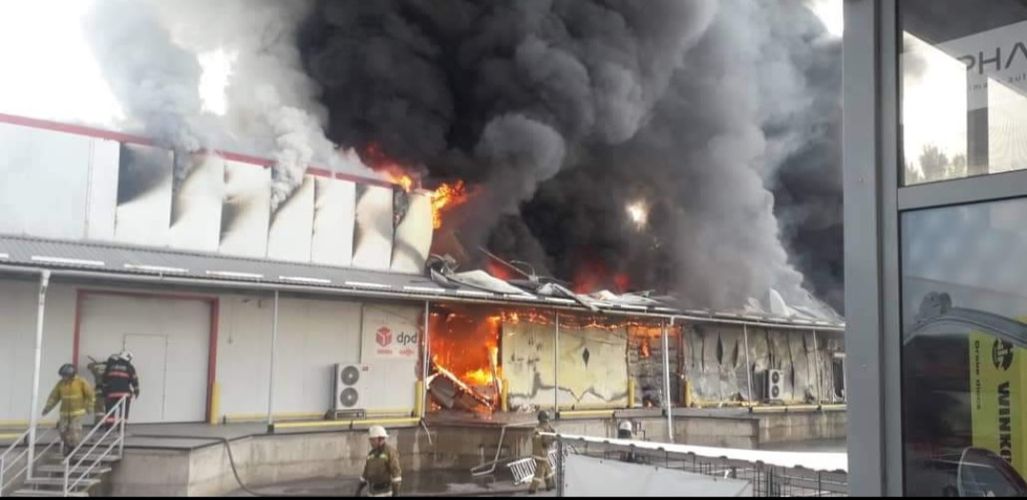 A fire broke out in a warehouse in Kolmo residential area in Bishkek. Seven fire brigades are involved in the fire extinguishing. The Ministry of Emergency Situations informed 24.kg news agency.