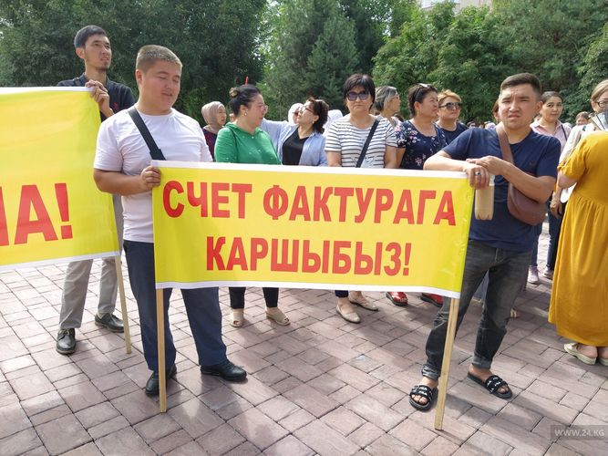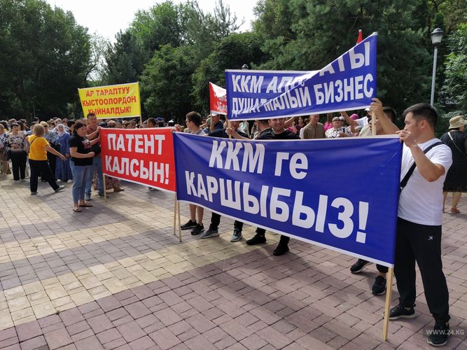 «We protest against installation of cash registers and demand business licenses for us. We are not against raising of business license fees. Now they cost 2,800 soms. Let’s increase them to 5,000-6,000, we don’t mind. There are 1,500-2,000 of us jewelers in the country. We have a large revenue, but a small profit, because gold is expensive. We simply cannot work with a threshold of 8 million a year and cash registers,» Anara Ashirbaeva, the rally participant, said.