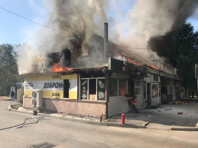 Dobronom store burned down the day before in the 8th microdistrict in Bishkek. Press service of the Ministry of Emergency Situations of Kyrgyzstan reported.