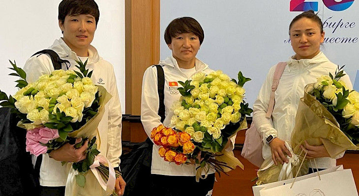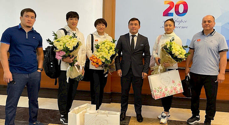 The winners of gold medals Aisuluu Tynybekova, Aiperi Medet kyzy, Meerim Zhumanazarova, their head coach Nurbek Izabekov were congratulated on the victory by the leadership of the Department of Physical Culture and Sports.