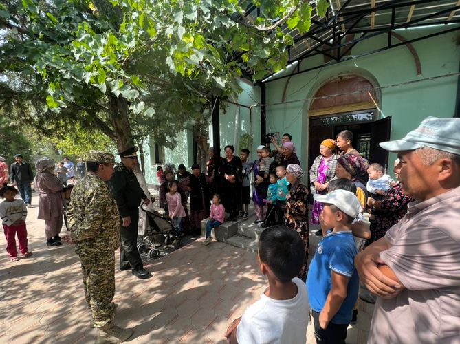 Chairman of the State Committee for National Security of Kyrgyzstan (SCNS), Kamchybek Tashiev, met with residents of the invaded areas of Batken region, who were forced to leave their homes due to aggression of Tajikistan at the border. Press center of the SCNS reported.