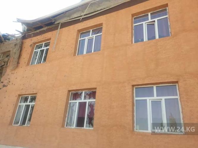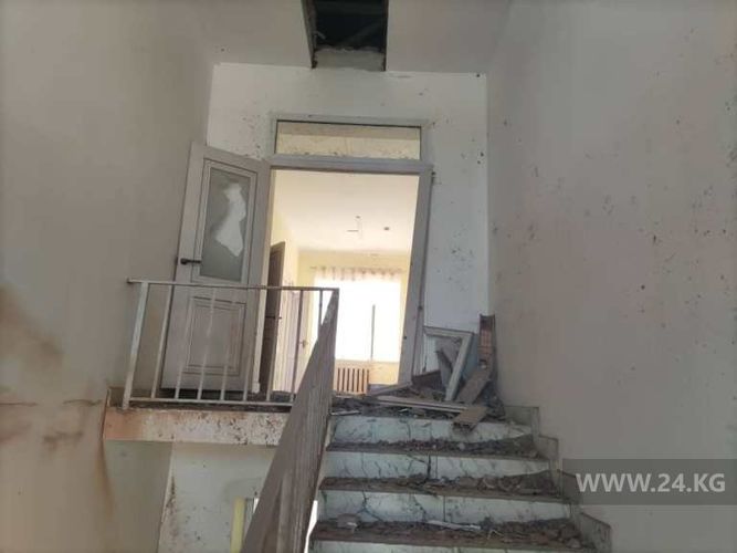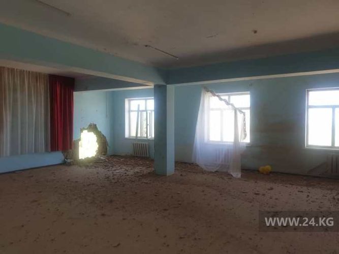 School and a kindergarten were completely destroyed in Maksat village, Leilek district. The mosque was fired at from mortars, its dome was destroyed.
