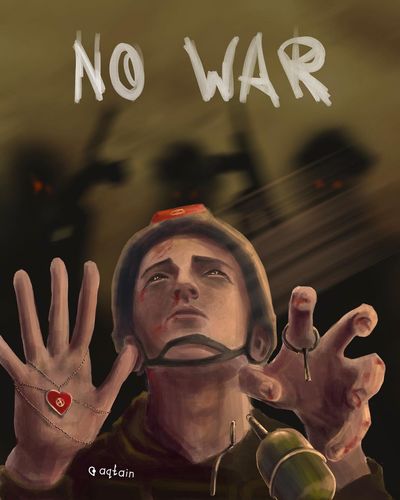 «A Kyrgyz soldier, 29-year-old Elaman Uraimov, blew himself up with a grenade to stop military and unmarked individuals from Tajikistan on the territory of Kyrgyzstan. By this illustration I want to express my sorrow for the dead. Eternal memory to the heroes!» the author of the work wrote.