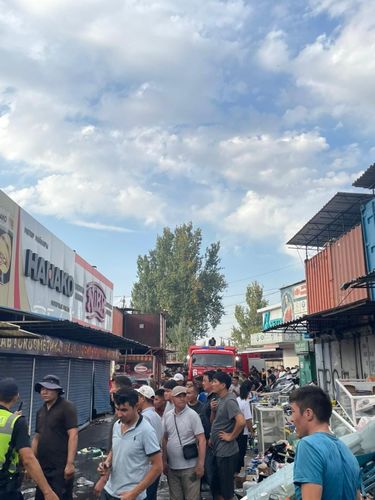 More than 10 containers with auto parts burned down at Kudaibergen market in Bishkek. The Ministry of Emergency Situations reported.