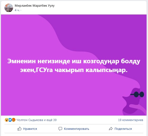 The blogger posted that he did not know what criminal case the interrogation was connected with. Mirlanbek Maratbek uulu was summoned to the Investigation Service of the Ministry of Internal Affairs.