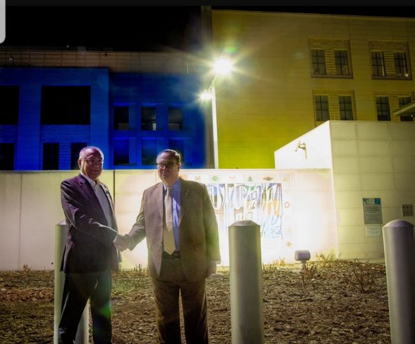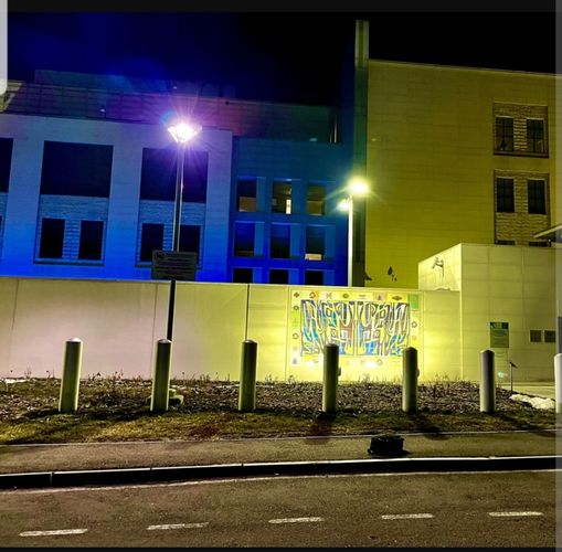 U.S. Embassy in Bishkek lights up its building in colors of Ukraine flag