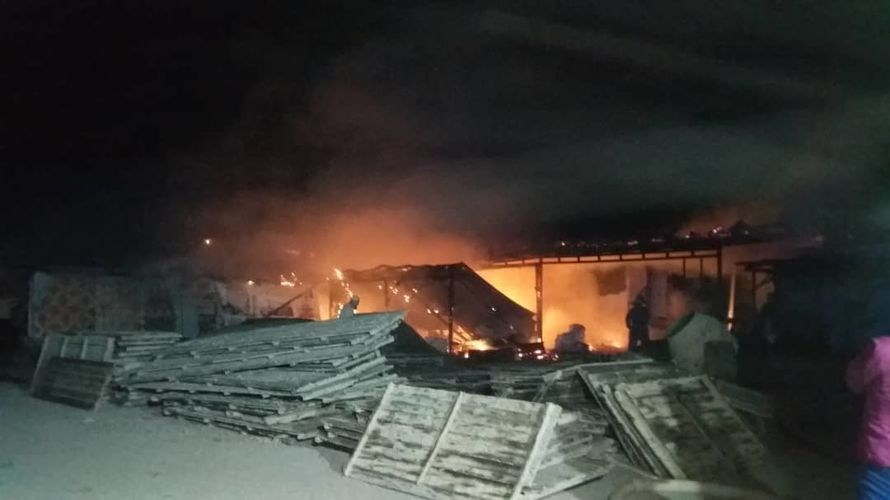 «Information about fire in the warehouse of the enterprise located on Manas Street was received at 2.35 a.m. The fire covered 94 square meters of the roof of the first warehouse and spread to the second warehouse, the area of fire was 150 square meters,» the ministry reported.
