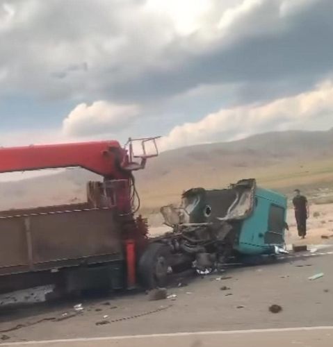 According to the Main Traffic Safety Department, a right-hand drive Honda Odyssey car drove into the oncoming lane and collided with another car — a special manipulator vehicle on the 78th kilometer of Bishkek — Naryn — Torugart highway.