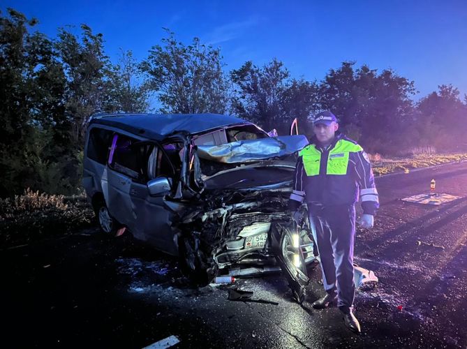 «According to preliminary information, the road accident occurred when the Hyundai car driven by a citizen of the Kyrgyz Republic entered the oncoming lane. As a result of the collision, the driver of the car and four passengers were fatally injured. One passenger of Honda minivan also died at the scene. Eight more — a driver and seven passengers — are currently receiving medical assistance,» the statement says.