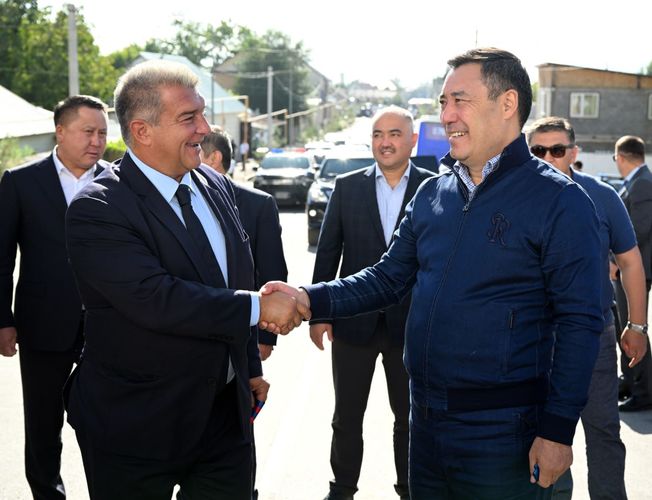 «I will not be mistaken if I say that the construction of the academy of Barcelona club was one of the largest football infrastructure projects not only in Kyrgyzstan, but also in Central Asia as a whole. There are many talented athletes in the regions of our country. They take to the field and coach the national team and domestic football clubs. The names of Nadyr Payazov, Vladimir Melnichenko, Nematzhan Zakirov, Asylbek Momunov, Vladimir Vlasichev and many other great football players from the southern regions of our country are widely known in the republic. I think that the number of the best players and coaches will increase thanks to the academy, which has been officially opened today,» the head of state said.