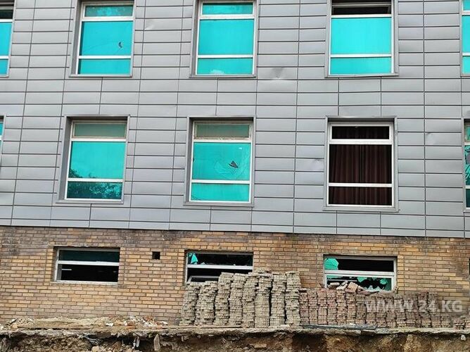 Broken windows: How one of hostels in Bishkek looks like after protests
