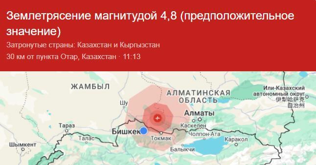 According to emsc-csem.org website, the epicenter was located on the territory of Kazakhstan, 32 kilometers from Bishkek, 15 kilometers from Kant town.