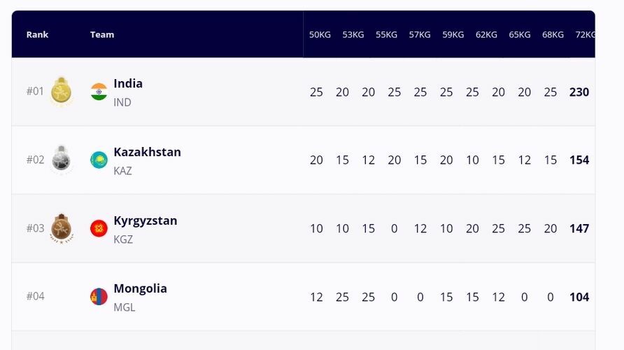 Athletes from India took the first place in the team scoring, Kazakhstan — the second.