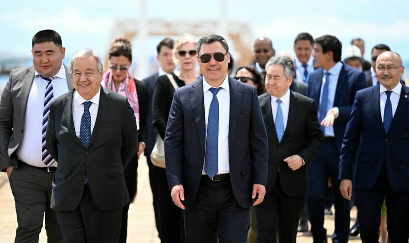 Sadyr Japarov and Antonio Guterres walked along the pier, built in the form of komuz, on which komuz players in national clothes performed folk music.