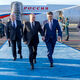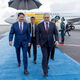 President Sadyr Japarov was met by the Prime Minister of Kazakhstan Olzhas Bektenov and other officials.