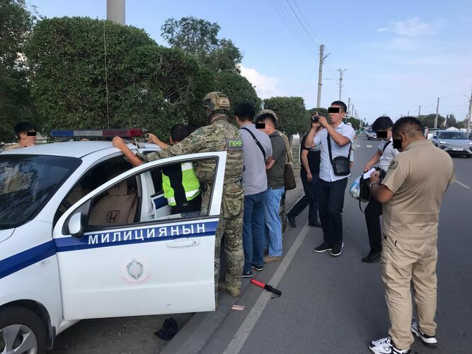 Two traffic police officers have been detained in Balykchi city of Issyk-Kul region. The press center of the State Committee for National Security of the Kyrgyz Republic reported.