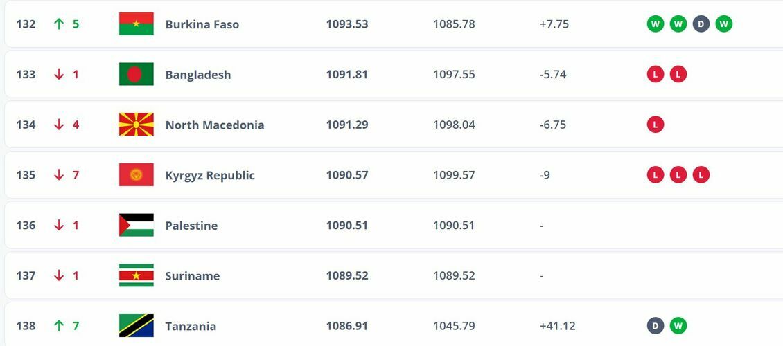 The women’s football team of Kyrgyzstan has dropped to 135th place in the FIFA ranking. The updated list was published on the official website of the international federation.