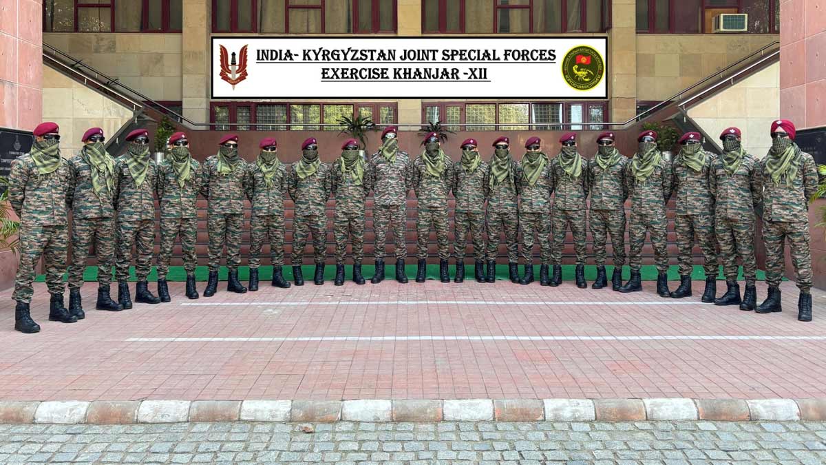 The Indian contingent is represented by troops from the Parachute Regiment (Special Forces) while the Kyrgyzstan contingent is represented by the Scorpion 25th Special Forces Brigade.