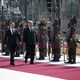 The Presidents greeted each other, and the national anthems of the two countries were played. After the commander of the honor guard company delivered his report, the heads of state walked along the formation.