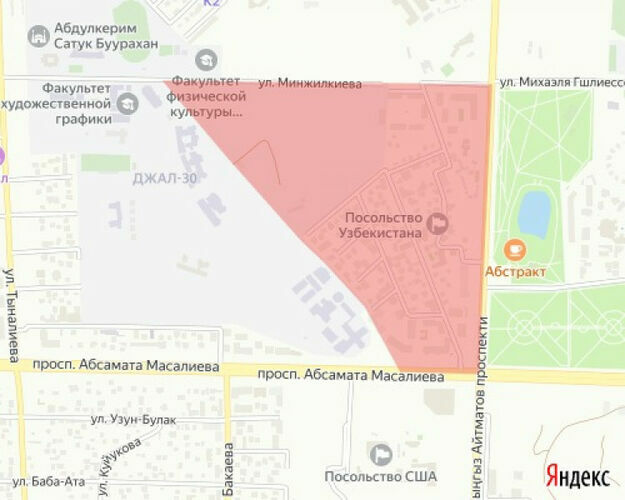 — Chingiz Aitmatov Avenue — Minzhylkiyev Street — Toktogul Sagyndykov Street — Absamat Masaliev Avenue.